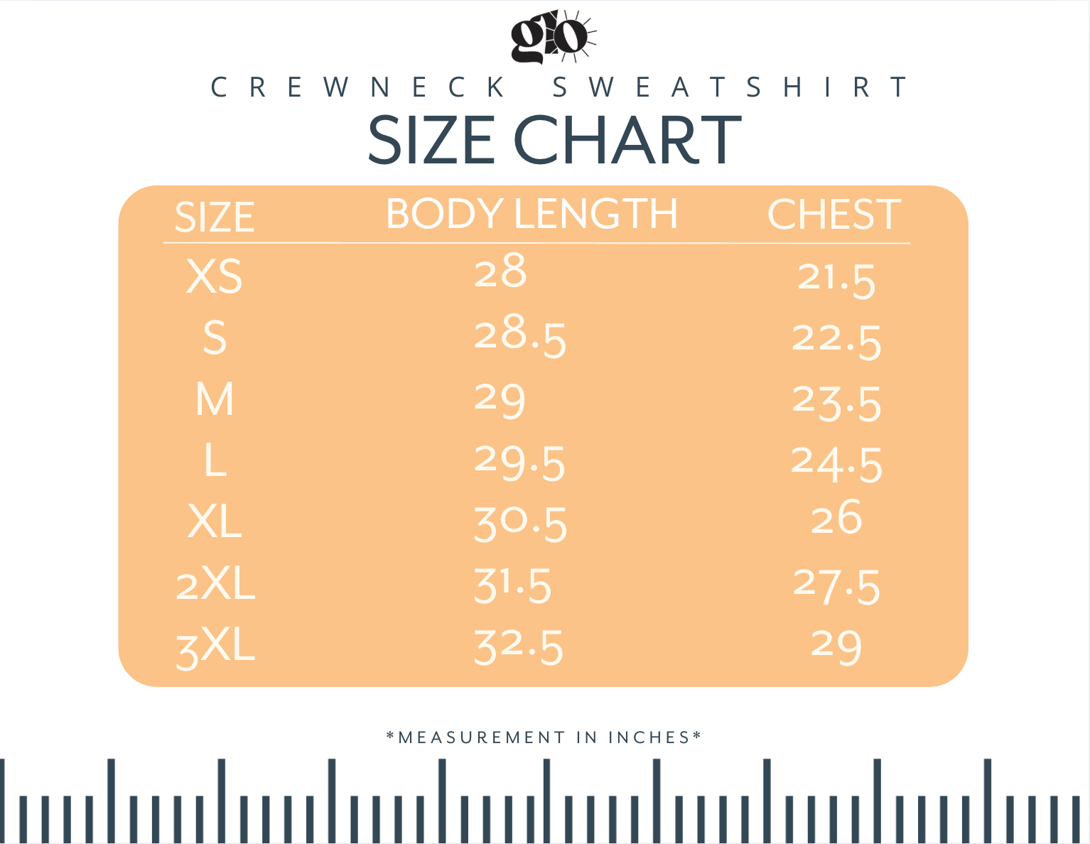 For best fit, we recommend measuring a hoodie you already own and love. Lay it flat and measure the chest 1” below the underarms (straight across), then measure the length from the shoulder down. Compare these measurements to the size chart to find your best fit.