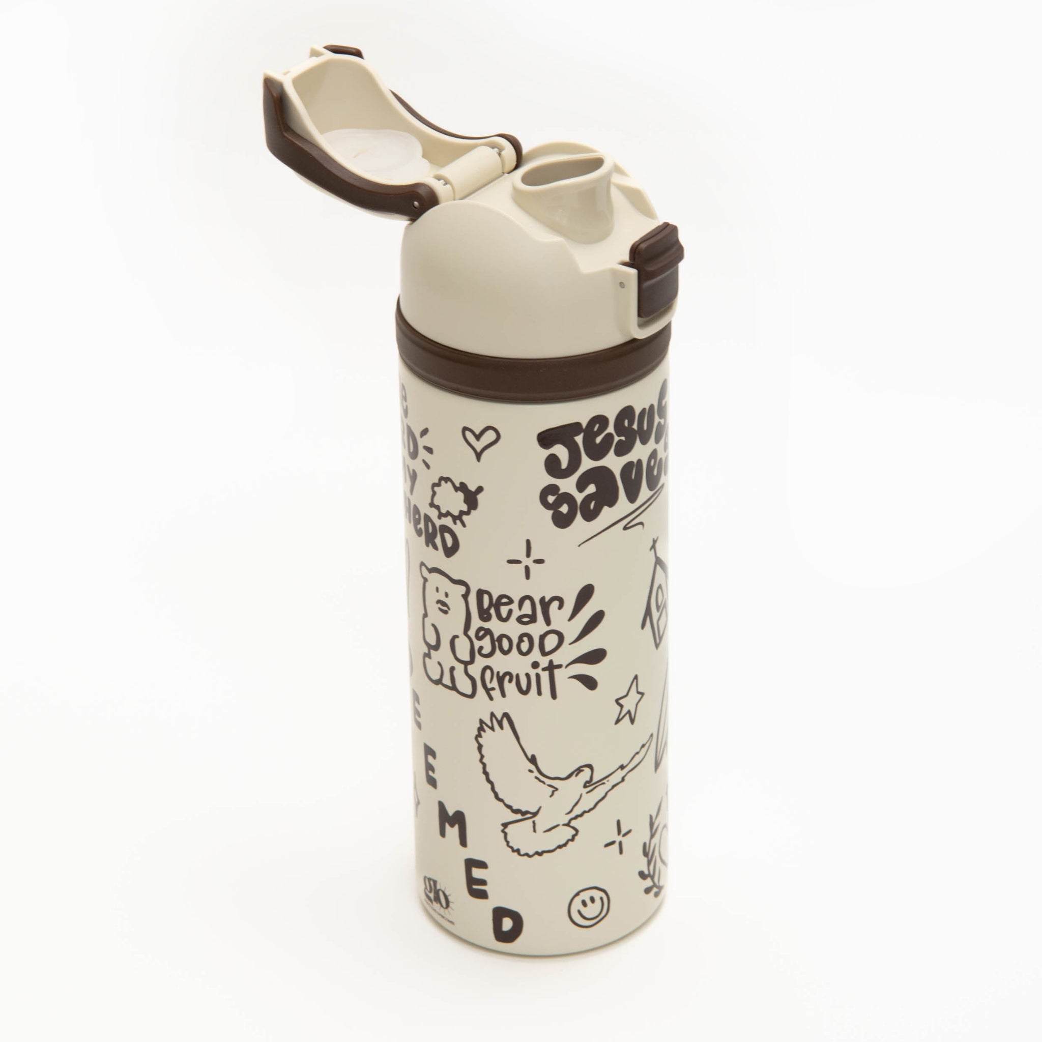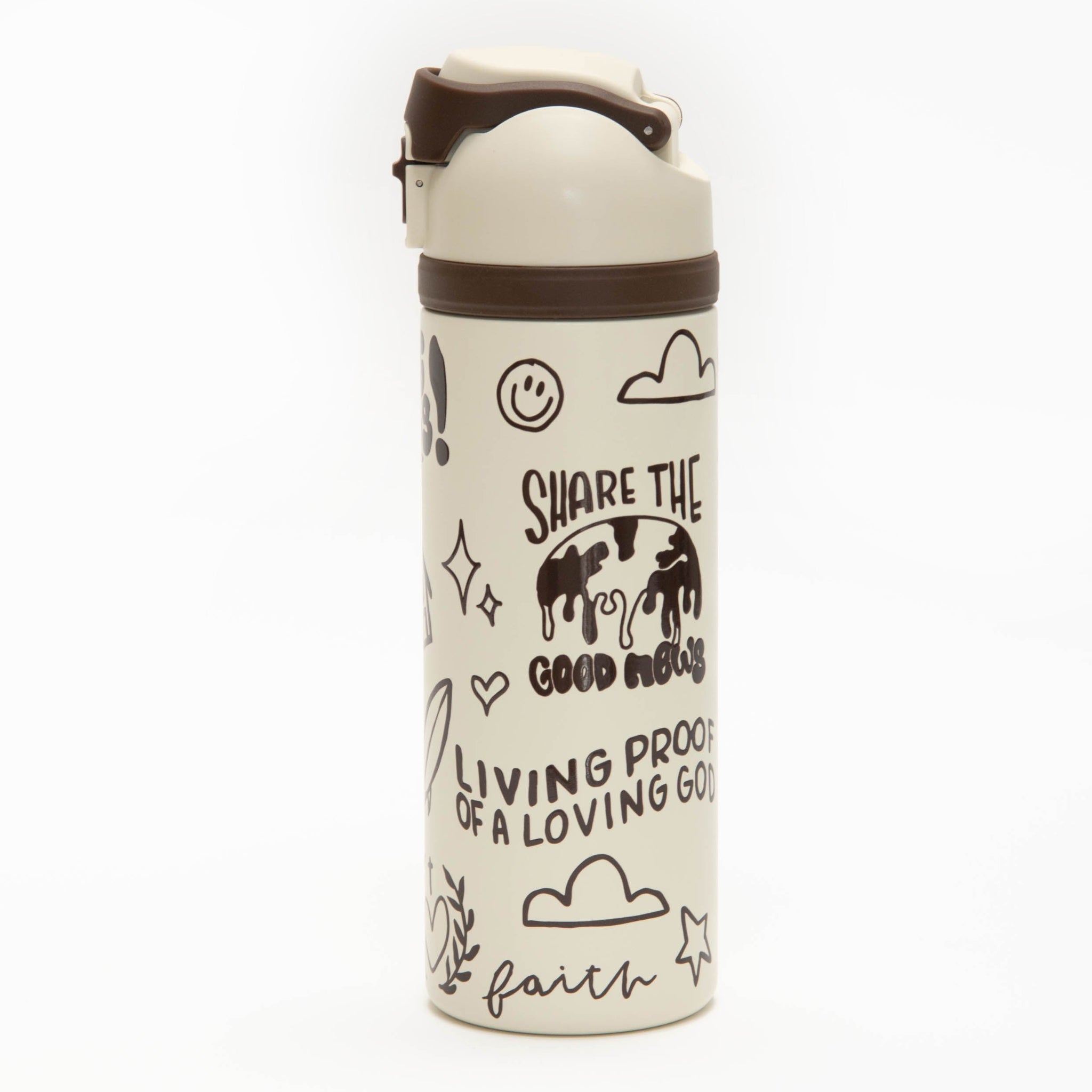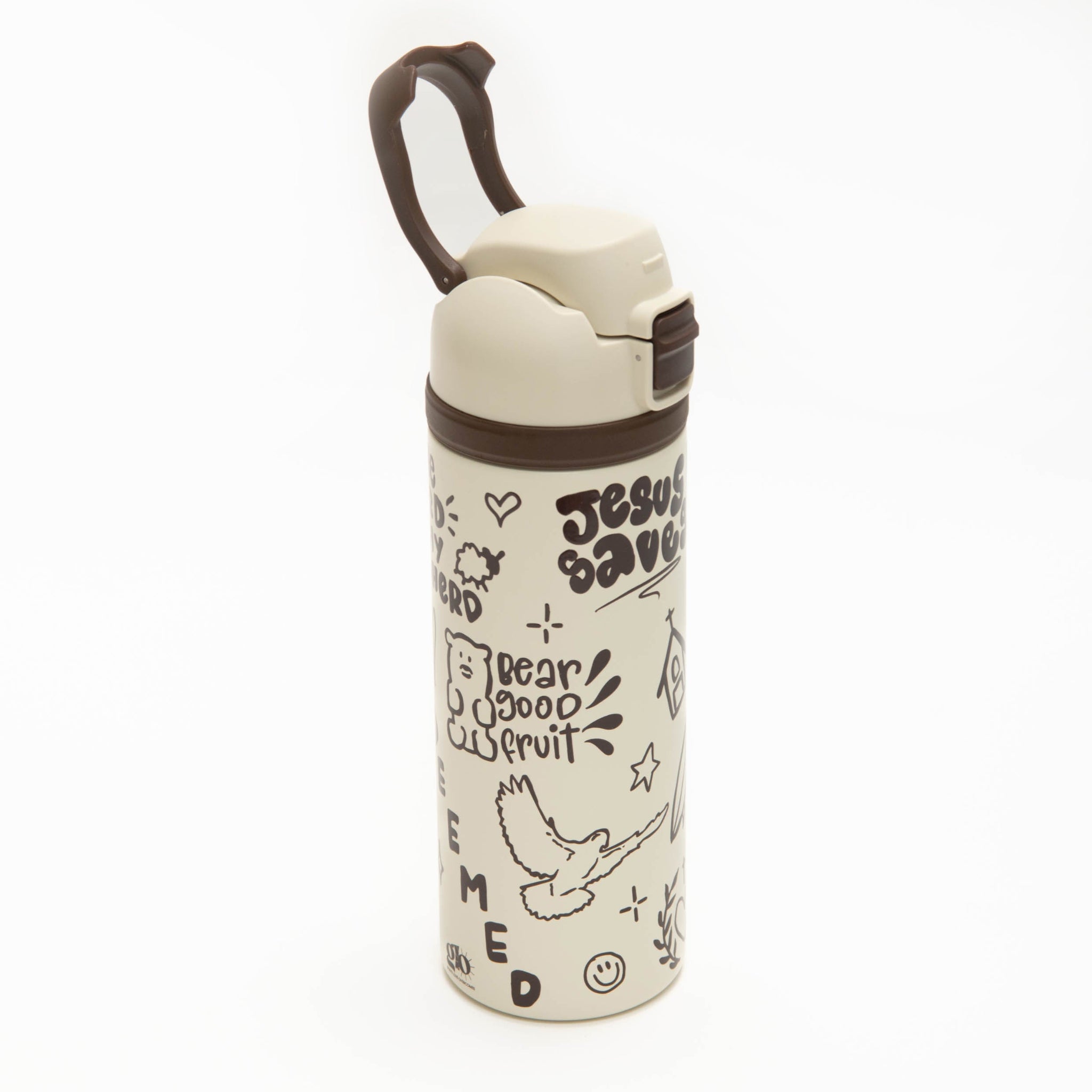 Hydrate with our compact 24 oz water bottle that can go the distance. Just push the button to flip the top open or push down to lock it shut to avoid spillage. Equipped with a flip handle for when your hands are full, this water bottle will become part of your look of the day.