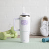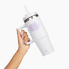 Fits in most cup holders. The two-in-one lid allows you to sip your drink or use the included reusable straw. This 30oz tumbler can keep HOT for 6hrs, COLD for 10hrs, and 45hrs iced.